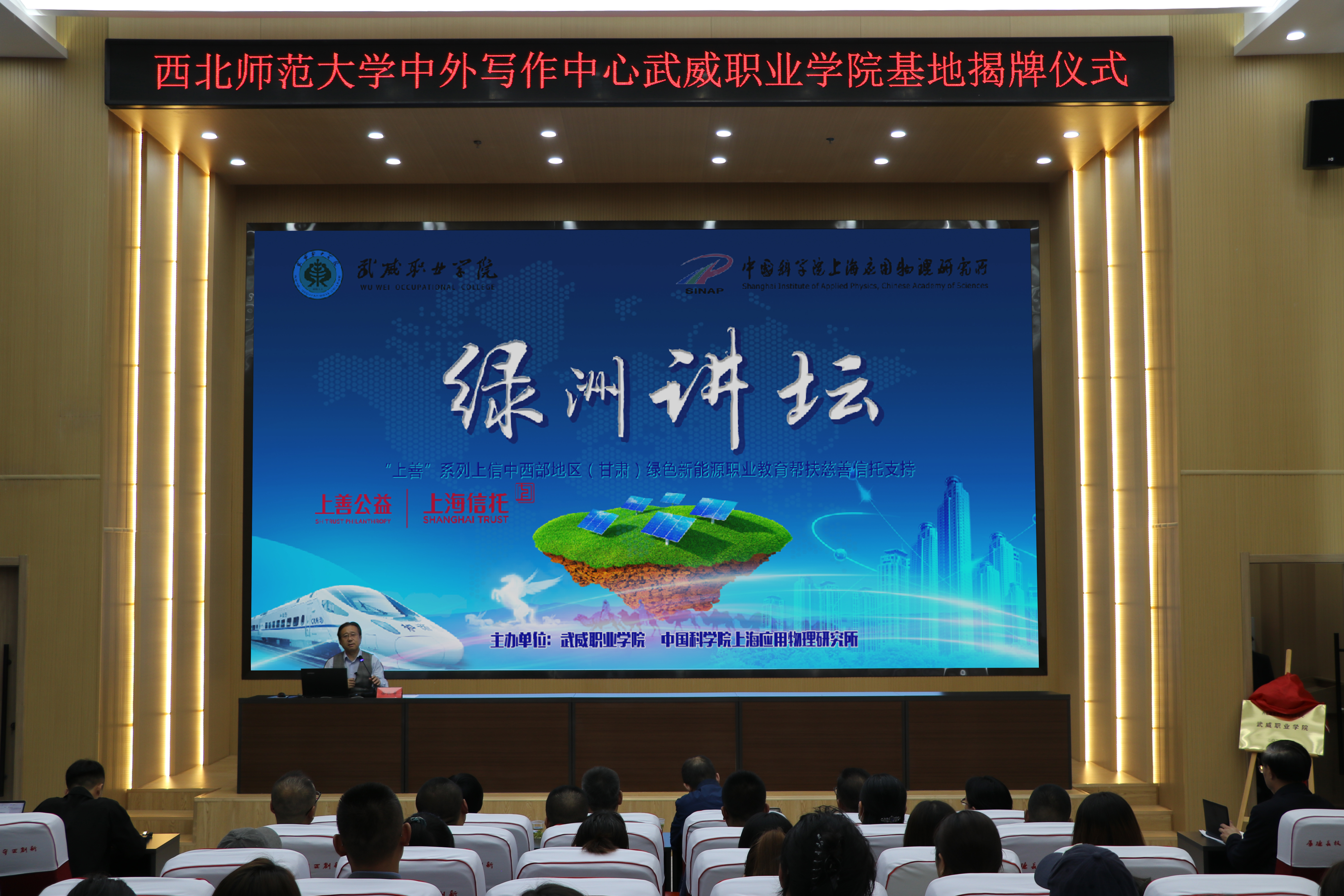5月28日下午,西北師范大學中外寫作中心武威職業(yè)學院基地揭牌儀式暨報告會在武威職業(yè)學院能源科技樓一樓學術報告廳隆重舉行。