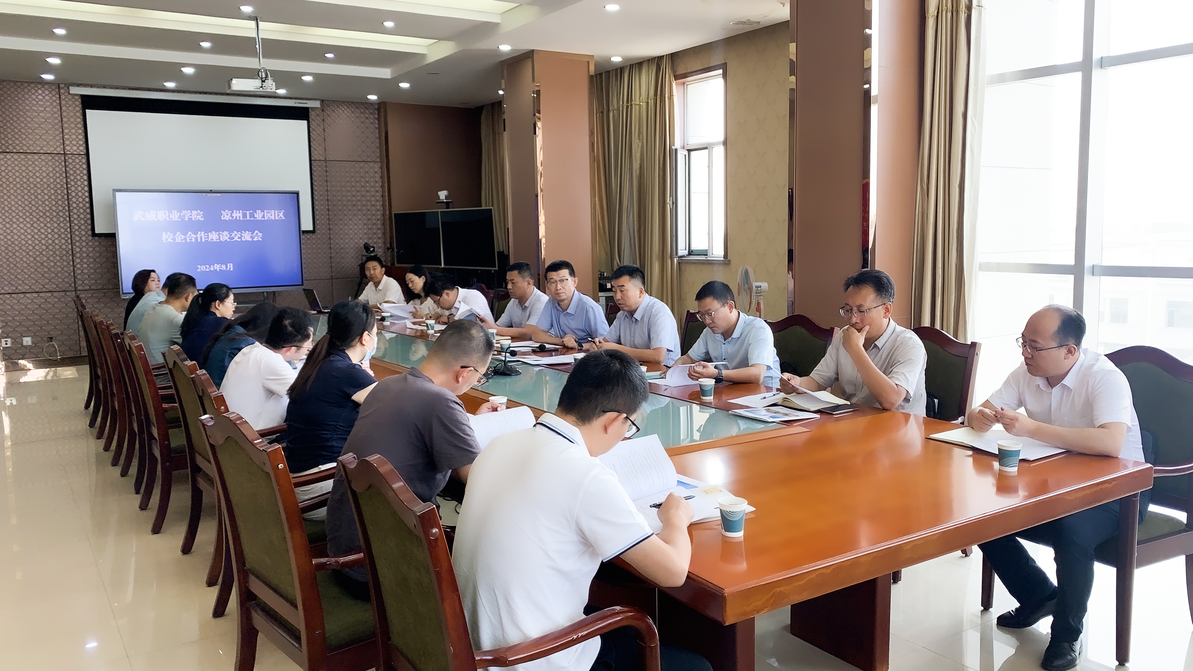 8月29日上午,學(xué)校赴涼州工業(yè)園區(qū)開展校企合作洽談。涼州工業(yè)園區(qū)黨工委副書記、紀(jì)工委書記楊建先主持座談會(huì),學(xué)校教務(wù)處、招生就業(yè)處、科技處負(fù)責(zé)同志和相關(guān)二級(jí)學(xué)院負(fù)責(zé)同志及園區(qū)內(nèi)16家規(guī)模以上企業(yè)代表參加了座談會(huì)。