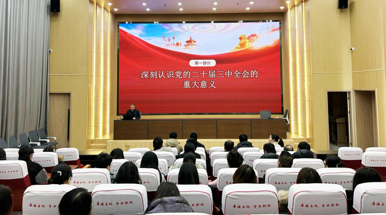 1月3日下午,黨委委員、副校長(zhǎng)王守云在能源科技樓學(xué)術(shù)報(bào)告廳為藝術(shù)與教育學(xué)院、經(jīng)濟(jì)管理學(xué)院師生帶來(lái)了一場(chǎng)生動(dòng)而有深度的專(zhuān)題黨課報(bào)告會(huì),深入解讀黨的二十屆三中全會(huì)精神和習(xí)近平總書(shū)記視察甘肅重要講話(huà)重要指示精神。兩學(xué)院黨員、預(yù)備黨員、入黨積極分子、師生代表共100余人參加。