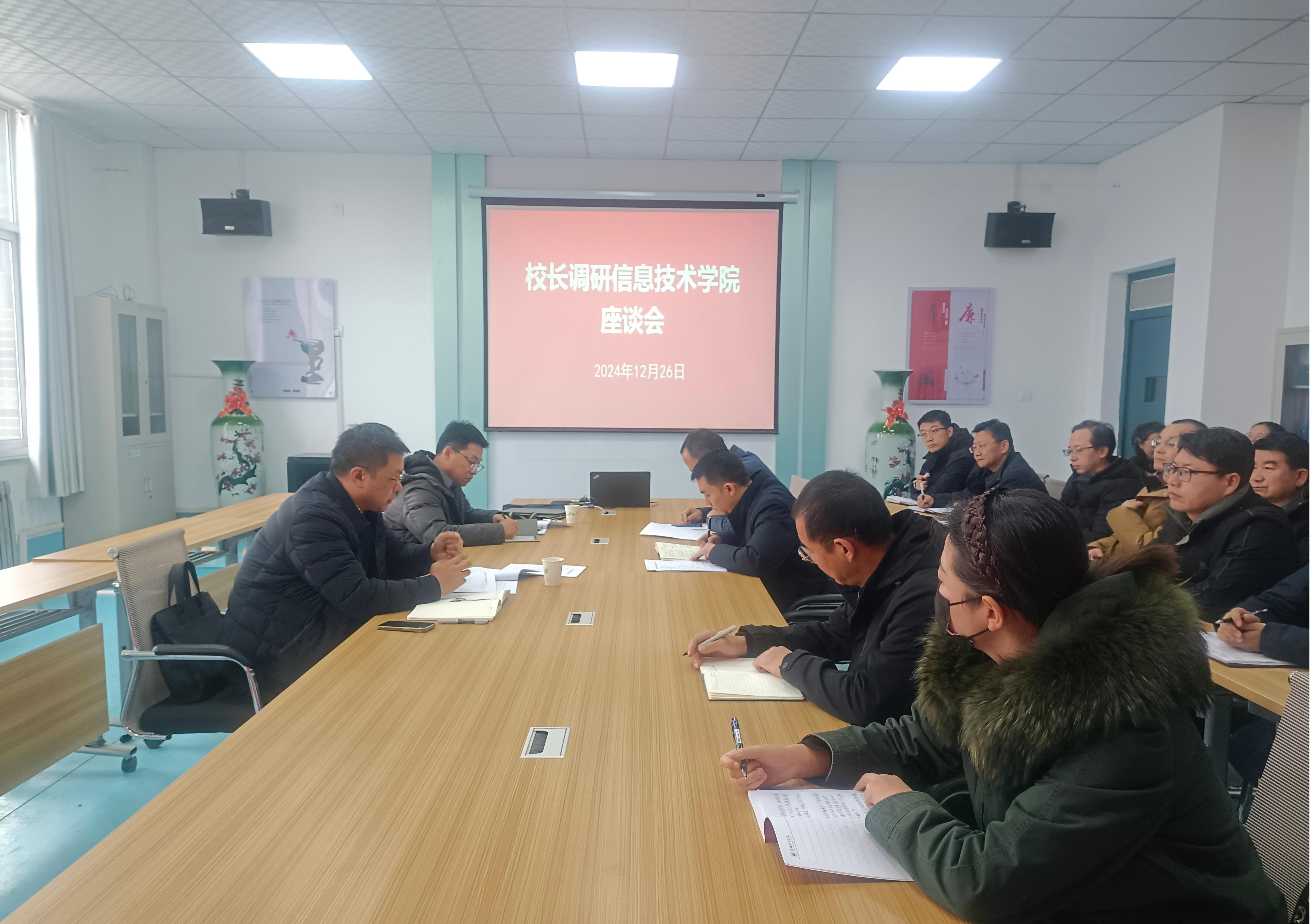 12月26日,校長(zhǎng)李海軍深入信息技術(shù)學(xué)院,通過(guò)實(shí)地走訪、座談交流等形式開(kāi)展調(diào)研,辦公室主任董鵬陪同調(diào)研。信息技術(shù)學(xué)院負(fù)責(zé)人和教師代表參加了調(diào)研活動(dòng)。
