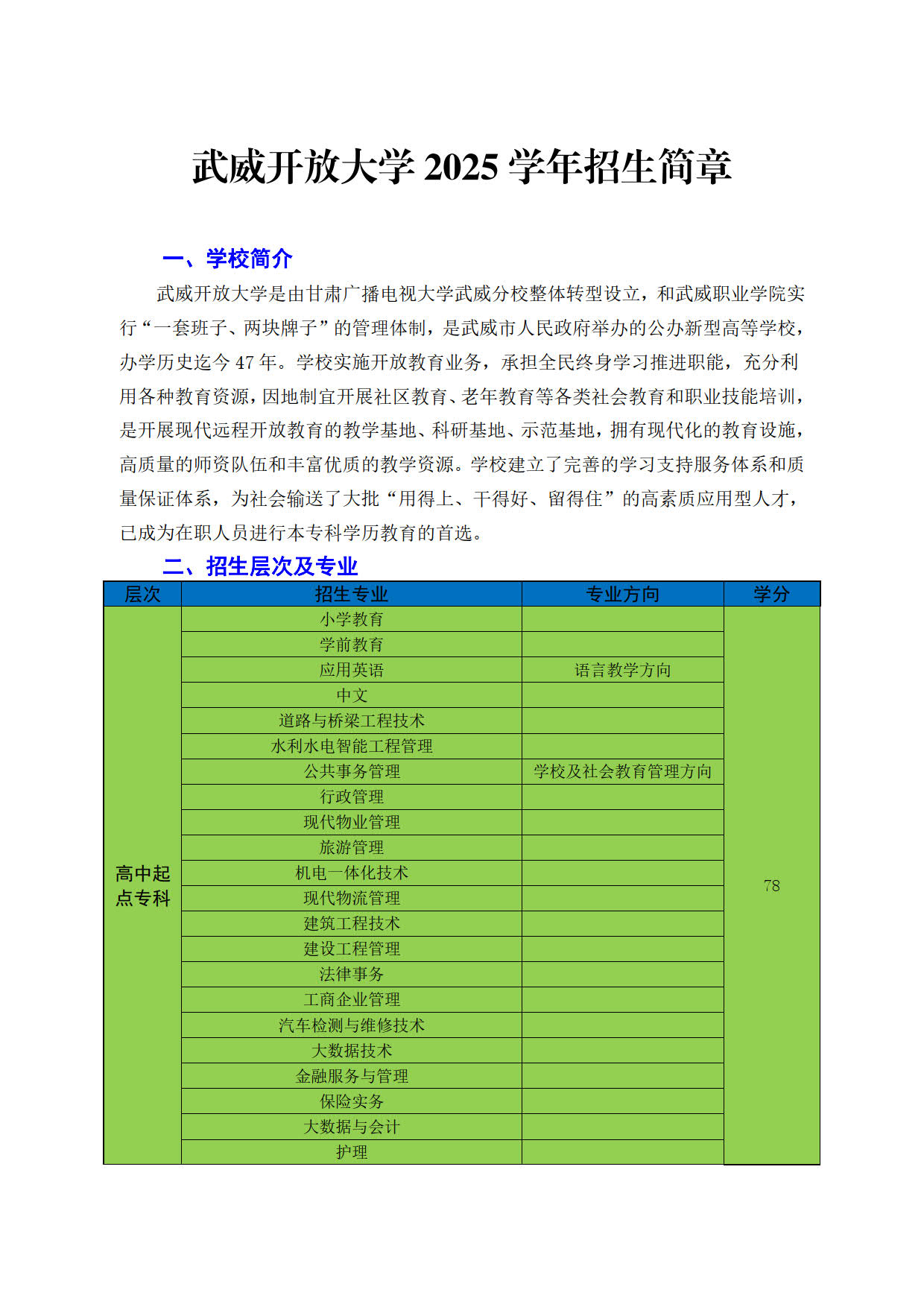 武威開放大學(xué)2025年招生簡章