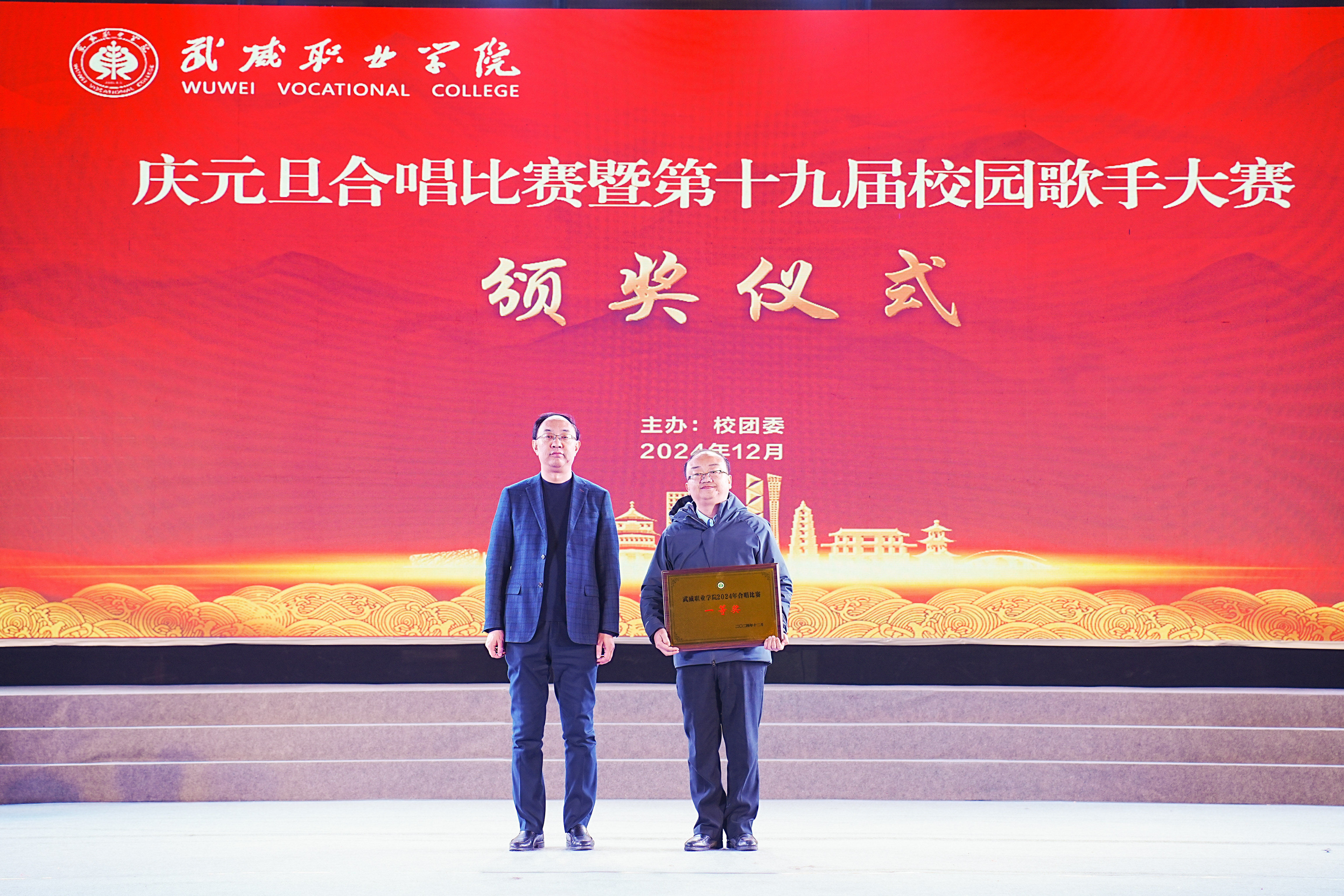 歌聲獻禮時代,青春唱響未來。12月26日晚,學校“慶元旦”合唱比賽暨第十九屆校園歌手大賽在體育館成功舉辦。學校黨委書記王宏出席活動并為獲獎集體和個人頒獎,黨委委員、副校長王守云出席活動,各二級學院和相關(guān)部門負責人與2000余名師生現(xiàn)場觀看了比賽。