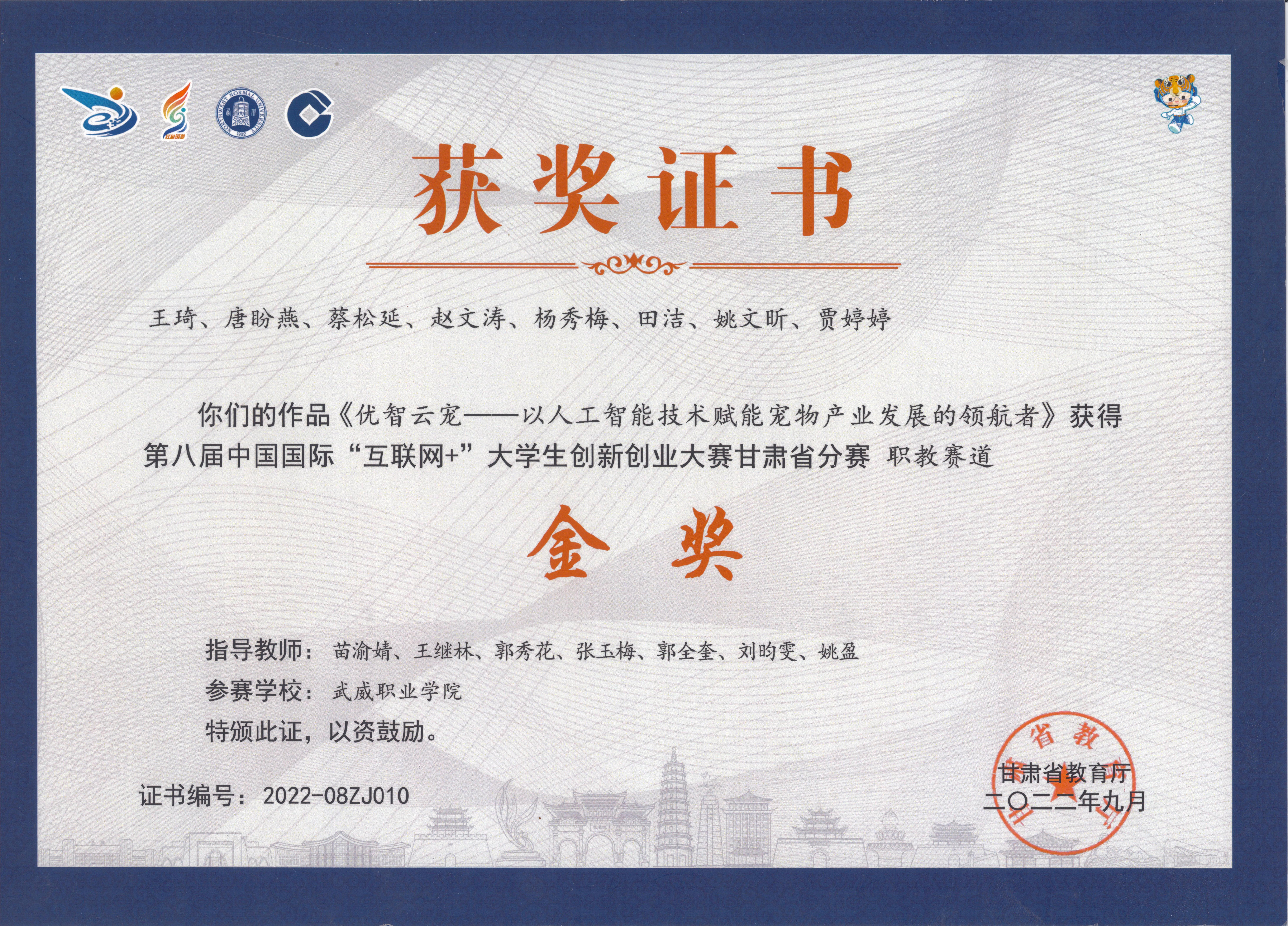 學(xué)生獲第九屆中國國際“互聯(lián)網(wǎng)+”大學(xué)生創(chuàng)新創(chuàng)業(yè)大賽甘肅賽區(qū)金獎