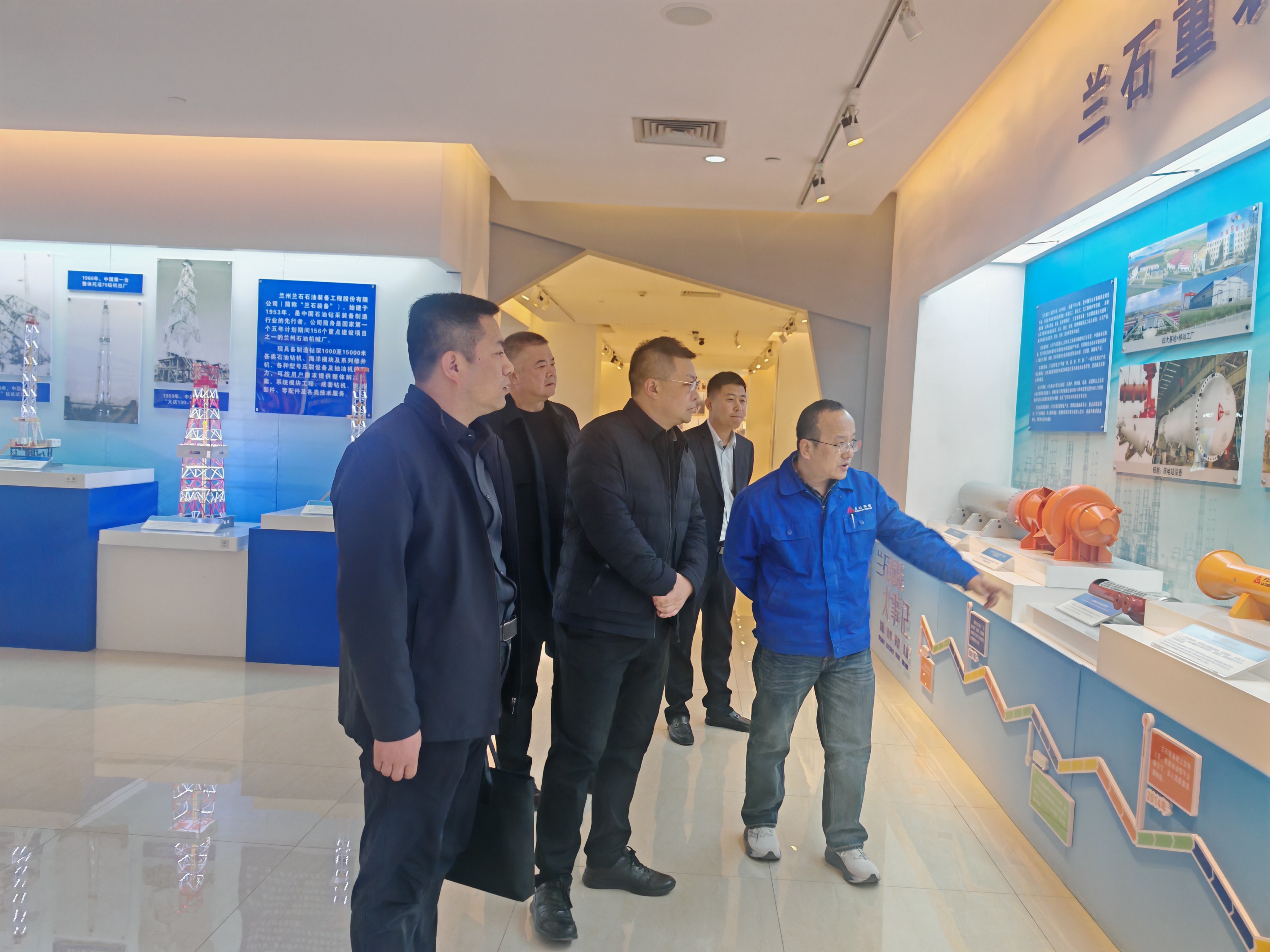 在蘭石集團,李海軍一行參觀了集團展覽館和綠氫一體化試驗示范基地,了解蘭石集團輝煌的發(fā)展歷程、主營核心業(yè)務(wù)、能源制造全產(chǎn)業(yè)鏈布局、科技創(chuàng)新成果及在氫能、核能、光伏等新能源新材料等領(lǐng)域的發(fā)展情況,充分領(lǐng)略到了蘭石集團在打造全國重要的新能源及新能源裝備制造基地上發(fā)揮的龍頭引領(lǐng)作用。