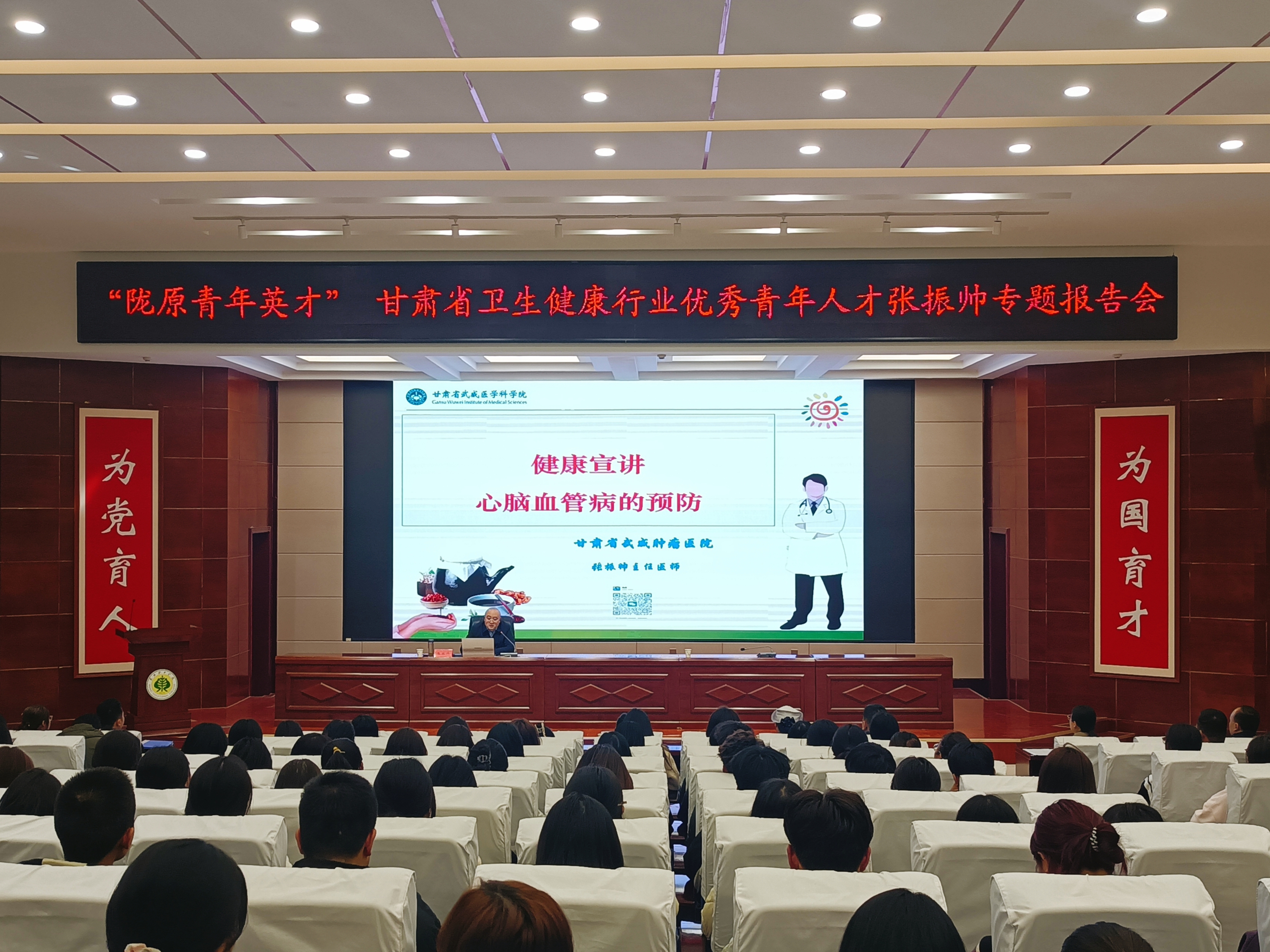 2月27日,學校邀請甘肅省武威腫瘤醫(yī)院張振帥主任醫(yī)師在學生發(fā)展中心菁英廳舉辦了中醫(yī)藥經(jīng)典誦讀活動與心腦血管疾病預防知識講座,護理學院學生團支部書記何玉桃等7名教師及2023級護理大專班全體學生共同參加。