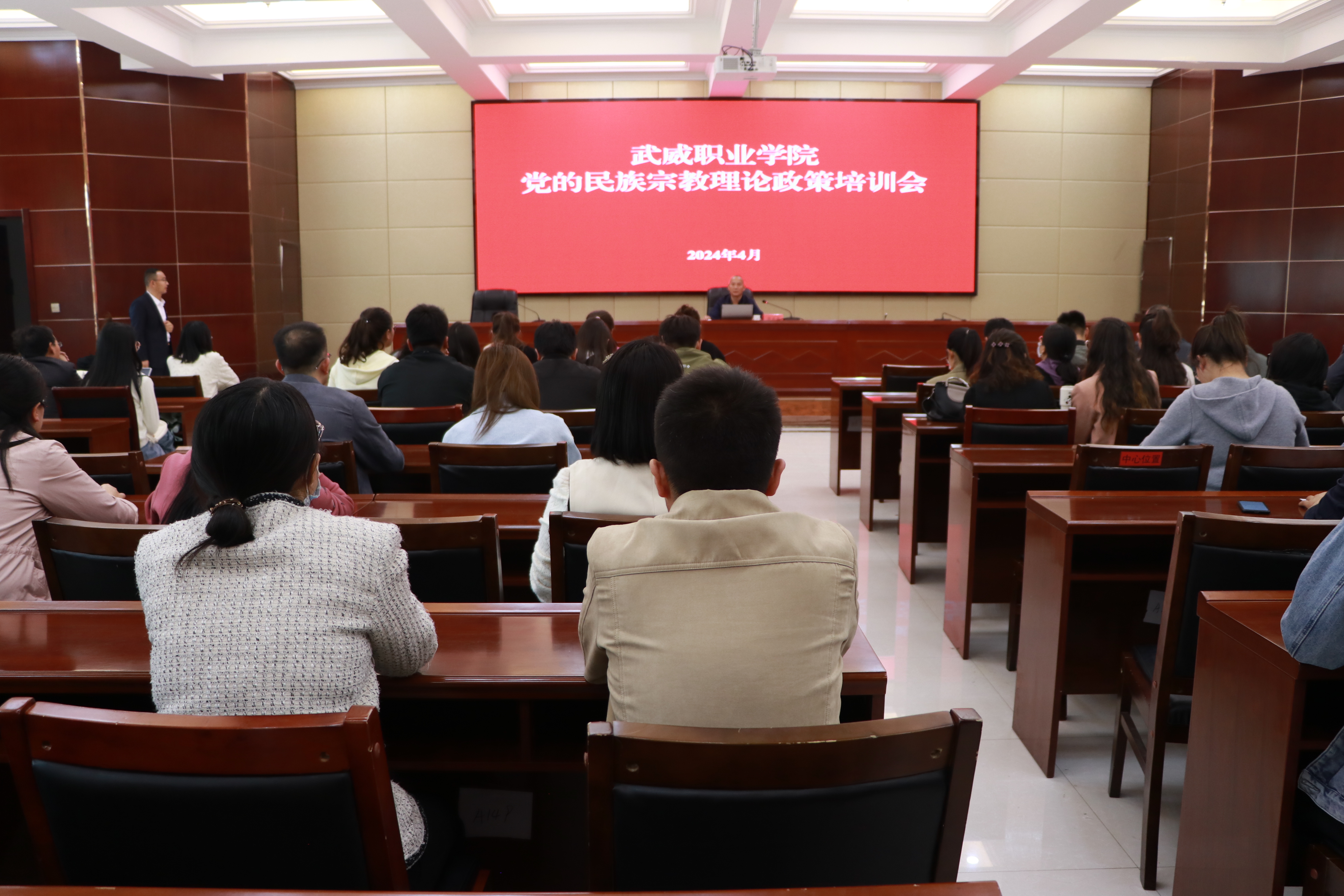為引導(dǎo)各民族學(xué)習(xí)宣傳貫徹黨的二十大精神和習(xí)近平總書記關(guān)于加強(qiáng)和改進(jìn)民族工作的重要思想,扎實開展第21個民族團(tuán)結(jié)進(jìn)步宣傳月活動,推動全校師生全力做好鑄牢中華民族共同體意識宣傳教育、加強(qiáng)民族團(tuán)結(jié)進(jìn)步創(chuàng)建,4月26日下午,學(xué)校在行樹樓北側(cè)報告廳舉行黨的民族宗教理論政策培訓(xùn)會。宣傳統(tǒng)戰(zhàn)部全體人員、馬克思主義學(xué)院選派的部分思政課教師、各二級學(xué)院輔導(dǎo)員、班主任代表等100余人參加培訓(xùn)會。