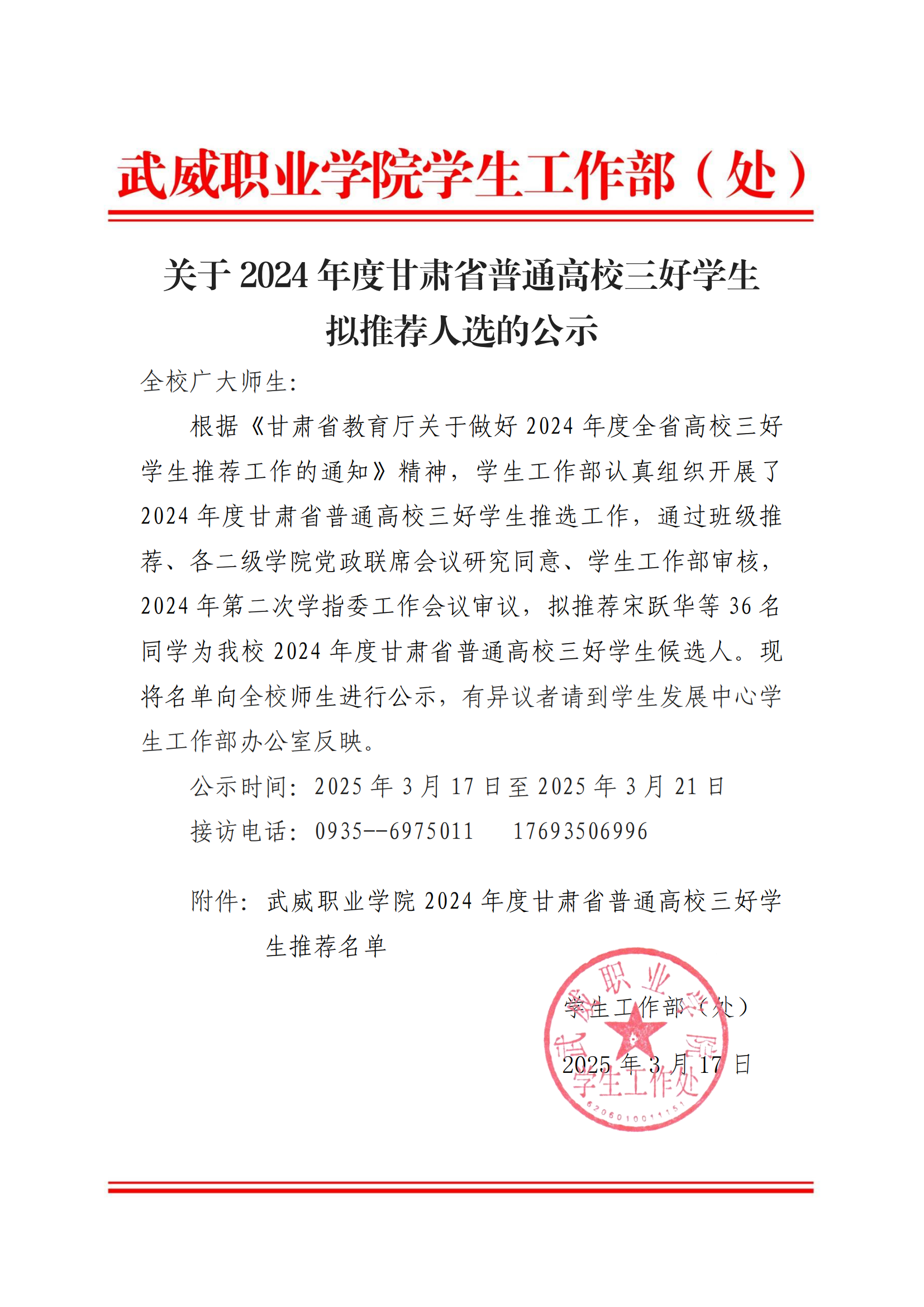 關(guān)于2024年度甘肅省普通高校三好學(xué)生擬推薦人選的公示