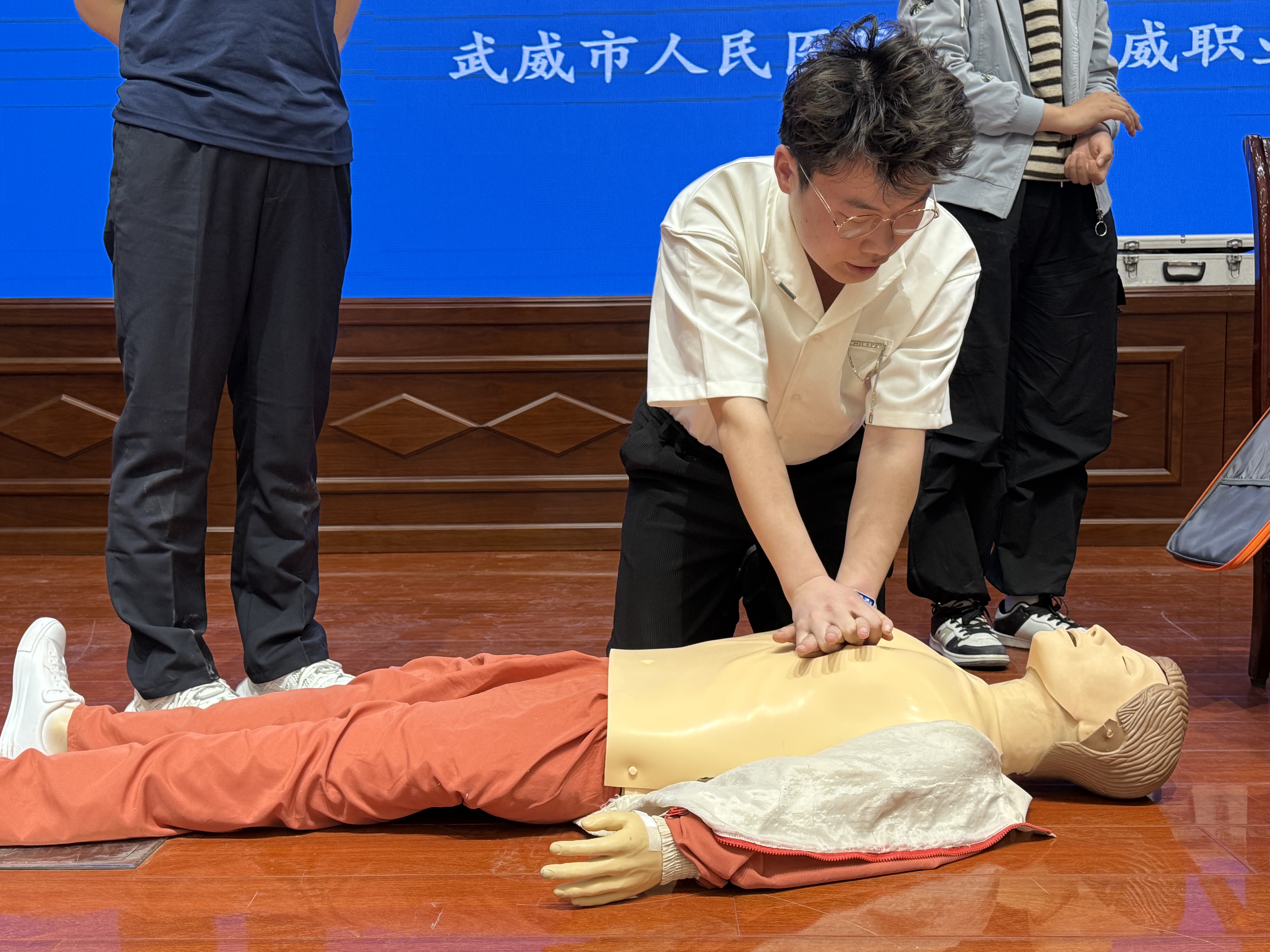 為普及急救知識,提升學生應急救護能力,4月17日下午,校團委聯(lián)合武威市人民醫(yī)院在學校菁英廳舉辦“關愛生命 救在身邊”專題培訓,200余名學生參與學習。活動通過“理論+實操”形式,系統(tǒng)教授學生心肺復蘇、氣道異物急救等技能,助力平安校園建設。