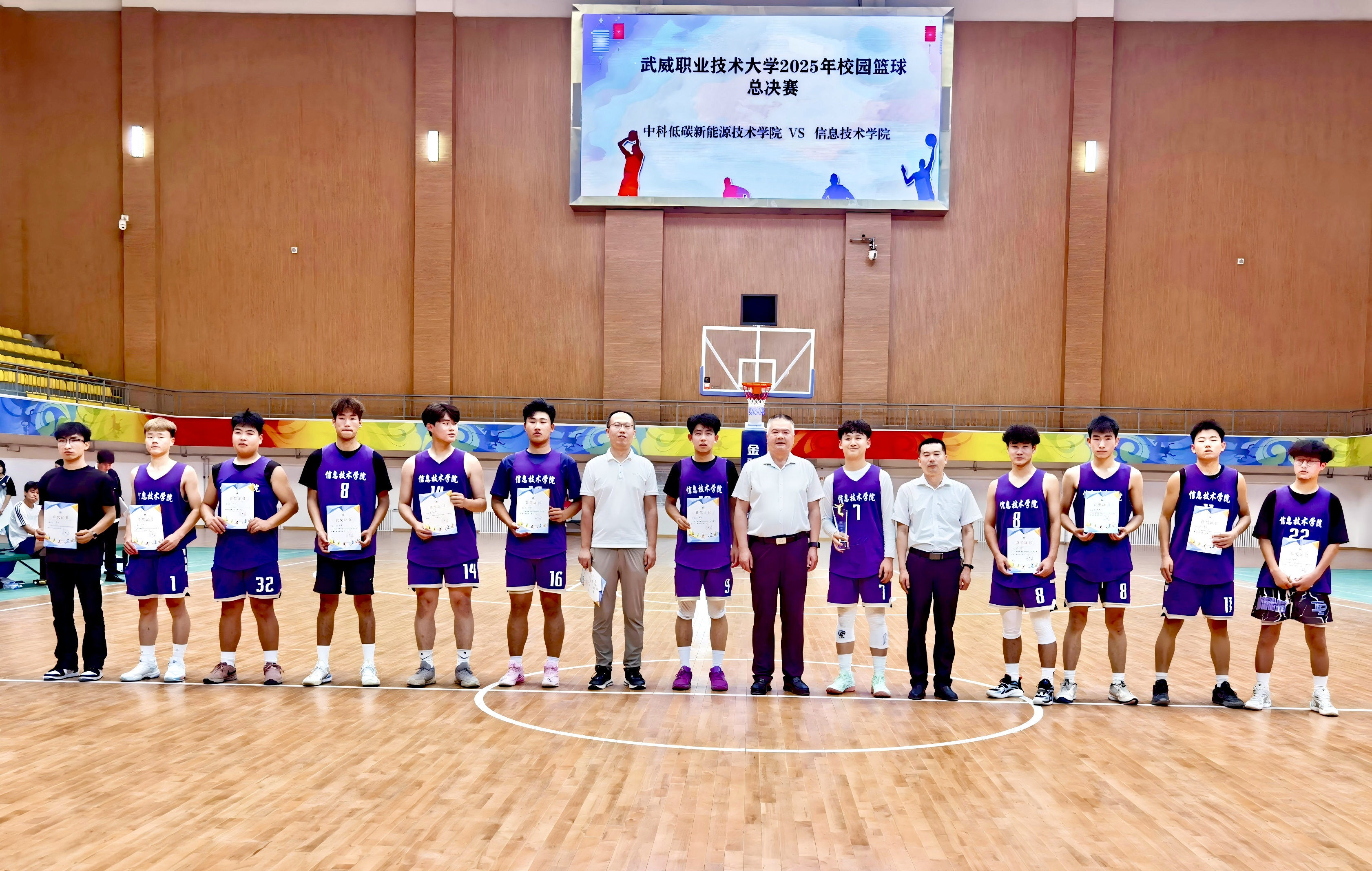 6月26日下午,由學(xué)校體育運(yùn)動委員會主辦,藝術(shù)與教育學(xué)院承辦的2025年校園籃球比賽男子組決賽在體育館舉行。經(jīng)過激烈比拼,信息技術(shù)學(xué)院代表隊(duì)以42:39戰(zhàn)勝中科低碳新能源學(xué)院代表隊(duì),獲得本次籃球比賽男子組冠軍。學(xué)校黨委委員、副校長王守云到場觀看比賽并為獲獎代表隊(duì)頒獎。