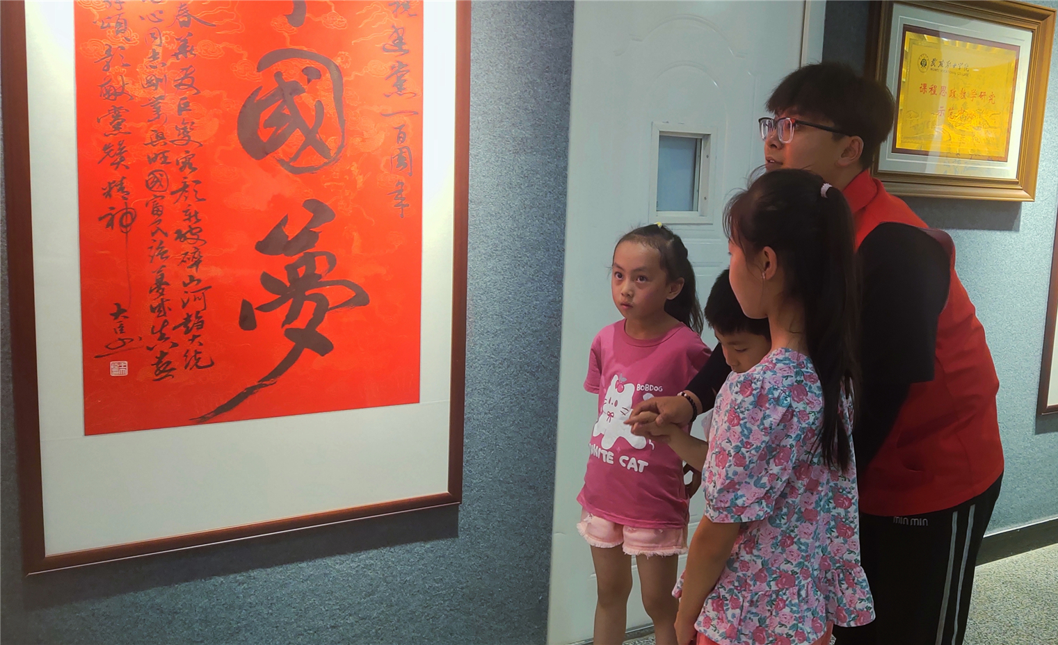 當小朋友們走進紅色文化藝術(shù)館,一幅幅絢麗多彩的文化長卷在眼前展開。在志愿者帶領(lǐng)下,他們輕聲誦讀書法作品,體會文字哲理,感受中國傳統(tǒng)書法藝術(shù)獨特魅力,在心靈深處種下熱愛傳統(tǒng)文化的種子。