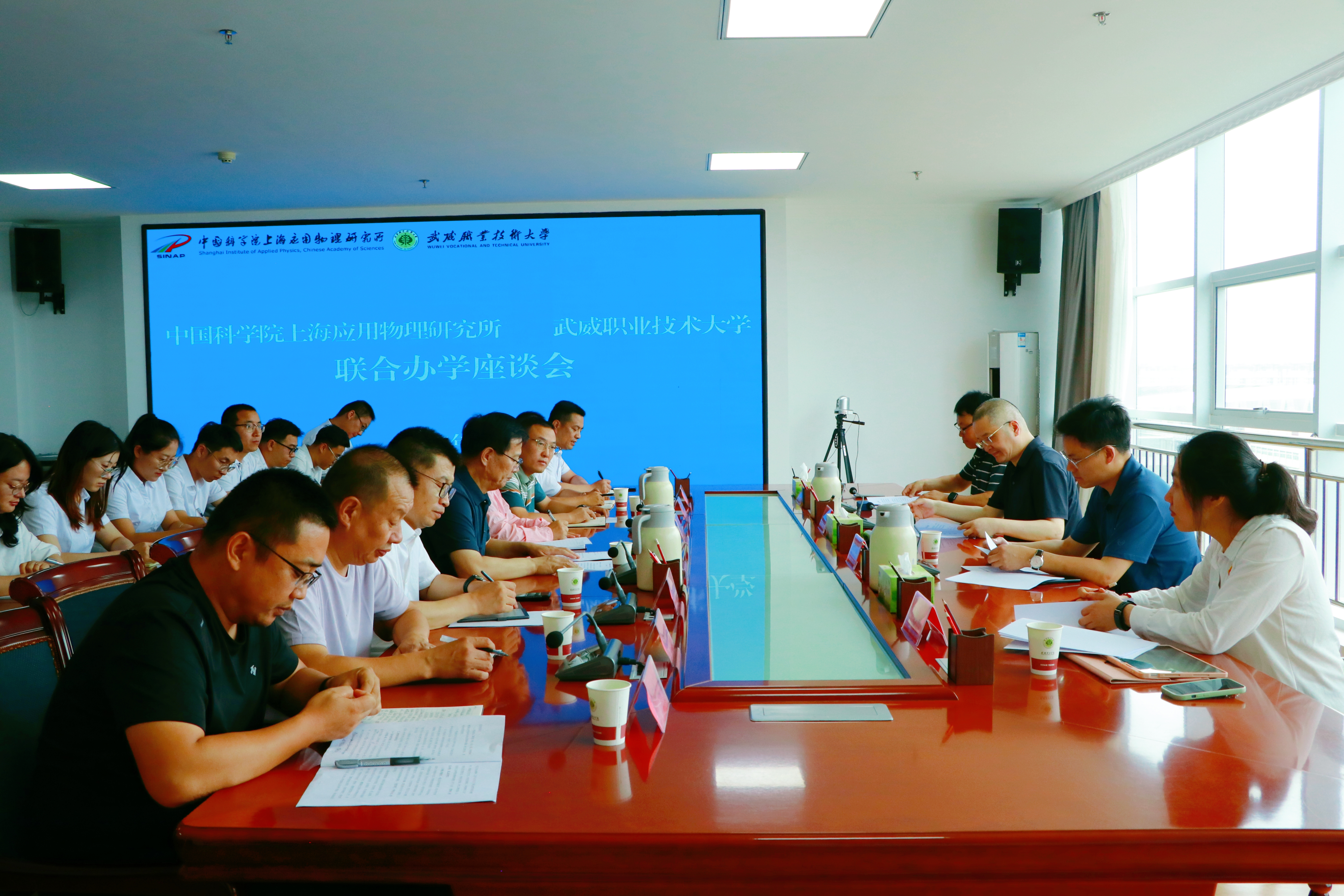 武威職業(yè)技術(shù)大學(xué)相關(guān)部門(mén)及學(xué)院負(fù)責(zé)同志,中科低碳新能源技術(shù)學(xué)院教師代表參加座談會(huì)。