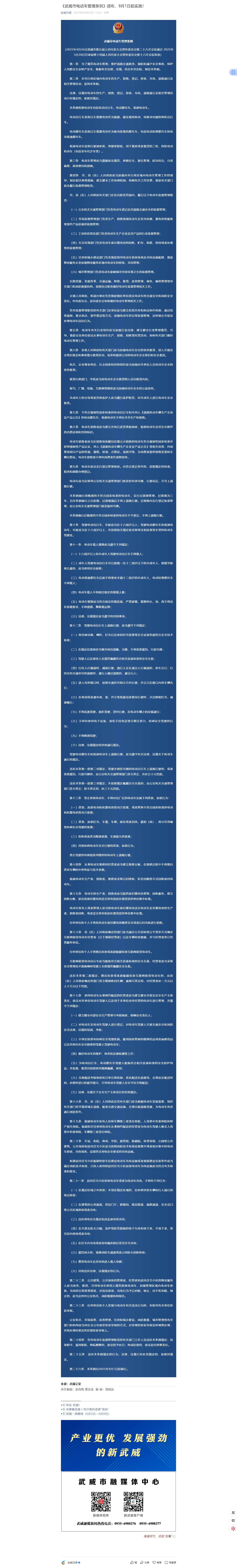 《武威市電動(dòng)車管理?xiàng)l例》頒布,9月1日起實(shí)施!