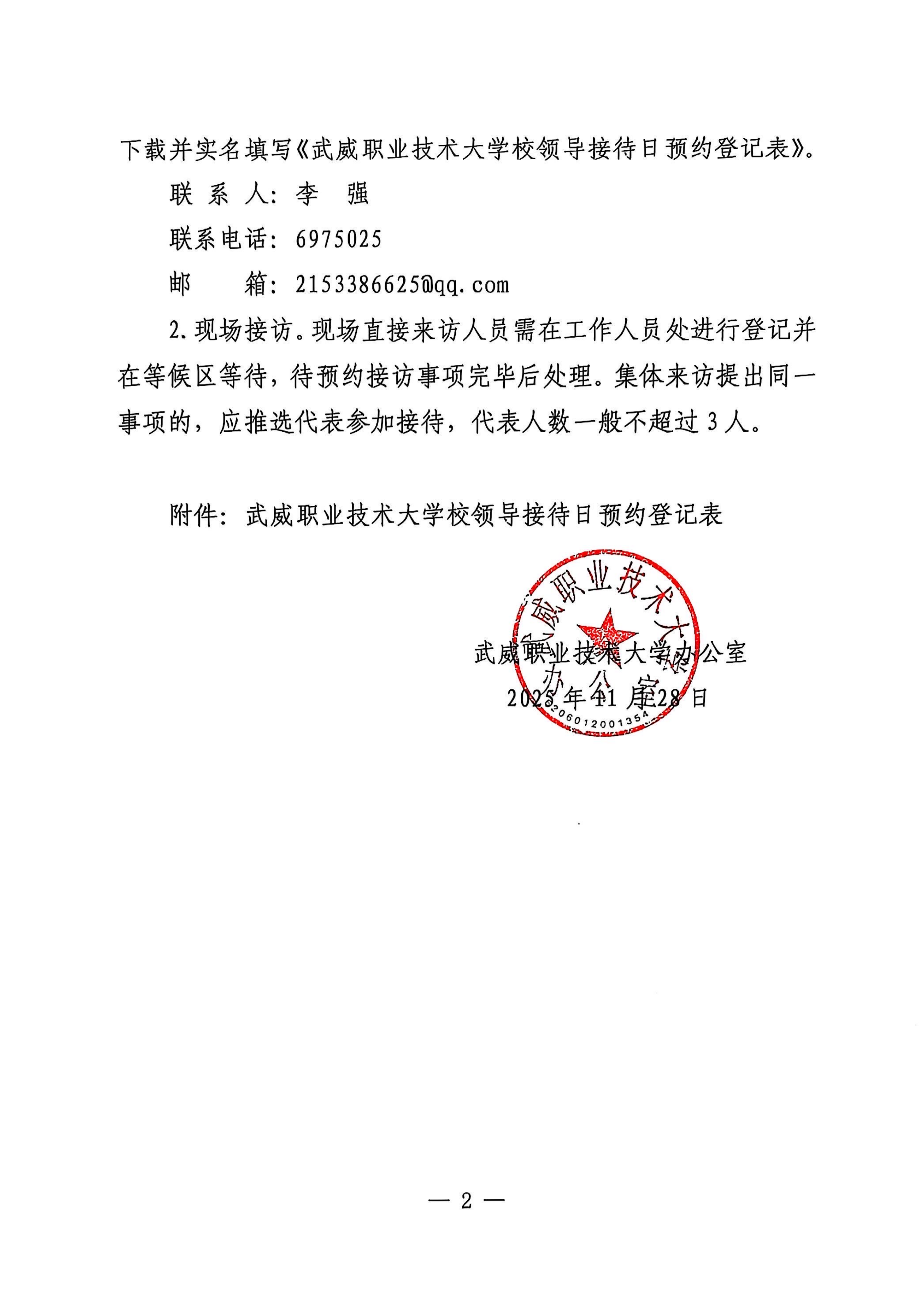 關(guān)于第十七周校領(lǐng)導(dǎo)接待日安排的通知