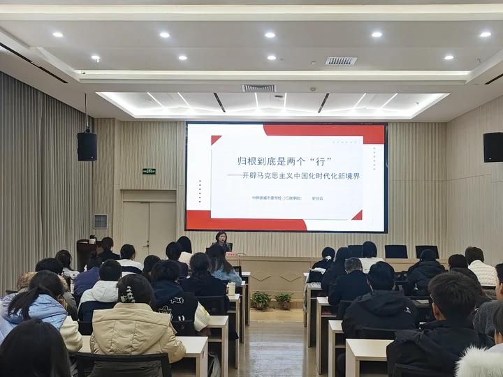 教學(xué)觀摩活動以“歸根到底是兩個行——開辟馬克思主義中國化時代化新境界”為題,從“真理之光:馬克思主義行”“實踐之行:中國化時代化的馬克思主義行”“復(fù)興之路:不斷開辟馬克思主義中國化時代化新境界”三部分展開講述,她從“兩個行”這一重大論斷的理論溯源、時代背景與核心要義切入,結(jié)合新時代以來的偉大實踐與歷史性變革,深刻揭示了中國共產(chǎn)黨為什么能、中國特色社會主義為什么好的理論邏輯與實踐密碼,生動回答中國之問、世界之問、人民之問、時代之問,實現(xiàn)了馬克思主義中國化時代化新的飛躍。她強調(diào),“兩個行”是相互貫通、有機統(tǒng)一的整體,開辟馬克思主義中國化時代化新境界,必須始終堅持“兩個行”的根本遵循,在實踐中不斷推進(jìn)理論創(chuàng)新,并用發(fā)展著的理論指導(dǎo)新的實踐。