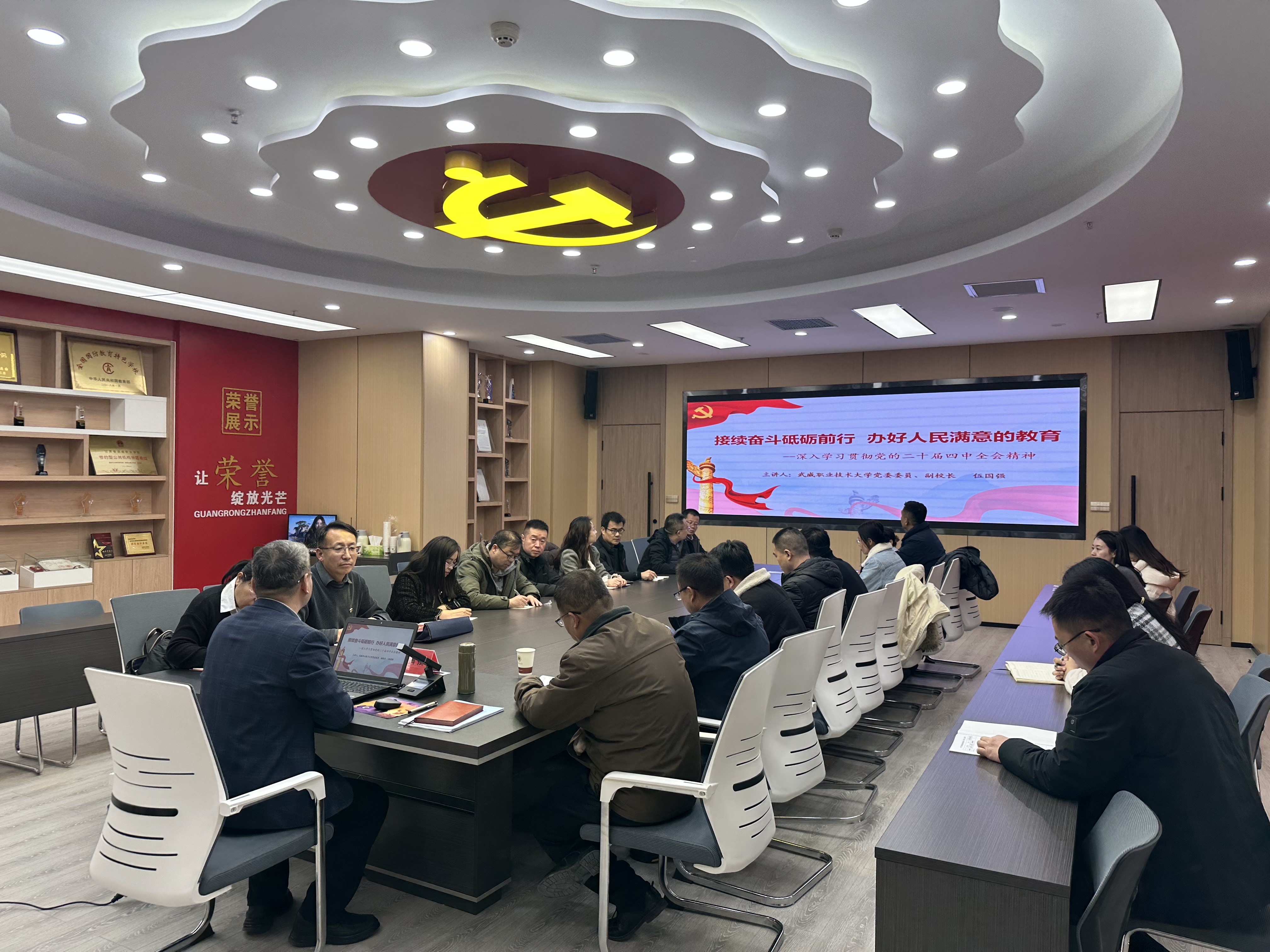 伍國強(qiáng)以《接續(xù)奮斗砥礪前行 辦好人民滿意的教育》為題,從歷史邏輯、國際視野和現(xiàn)實(shí)需求三個維度,圍繞“一個引領(lǐng)、六大原則、七方面目標(biāo)、十二項(xiàng)重要部署”的核心邏輯,解讀了“十五五”時期高質(zhì)量發(fā)展、科技自立自強(qiáng)、現(xiàn)代化產(chǎn)業(yè)體系建設(shè)等核心戰(zhàn)略部署,系統(tǒng)闡釋了黨的二十屆四中全會的重大意義及深遠(yuǎn)影響。伍國強(qiáng)結(jié)合職業(yè)本科教育發(fā)展使命強(qiáng)調(diào),職業(yè)本科院校作為高素質(zhì)技術(shù)技能人才培養(yǎng)陣地,要主動對接國家戰(zhàn)略需求,將全會精神深度融入立德樹人全過程,深耕內(nèi)涵建設(shè),精準(zhǔn)優(yōu)化專業(yè)布局與人才培養(yǎng)模式,不斷提升教學(xué)科研能力與育人水平;青年學(xué)子要厚植愛國情懷,錘煉過硬技術(shù)技能,將個人成長理想與國家發(fā)展大局緊密結(jié)合,以實(shí)際行動踐行青年學(xué)子的責(zé)任與擔(dān)當(dāng)。