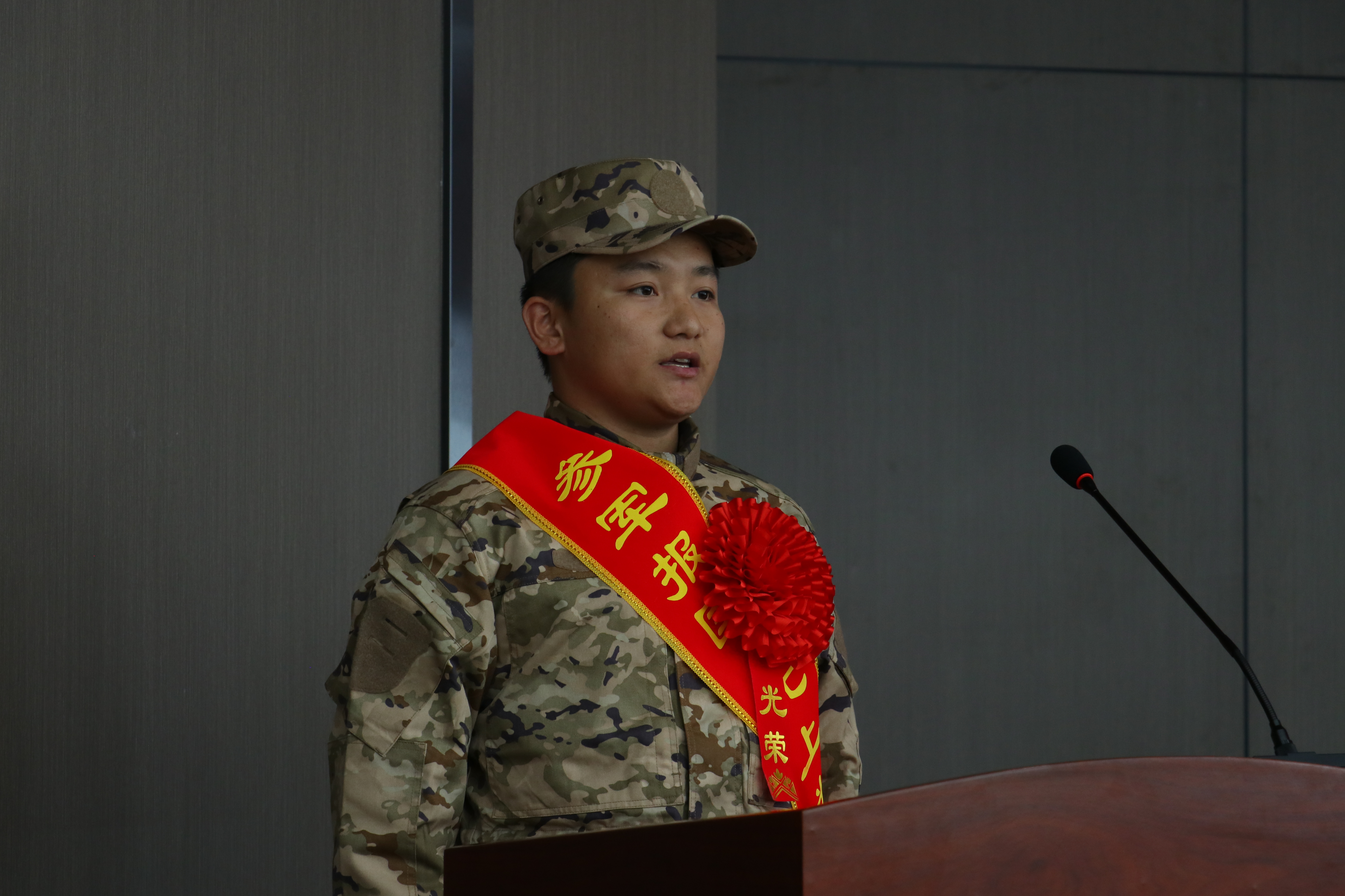 信息技術(shù)學(xué)院23級數(shù)字媒體大專班蔡紅強同學(xué)代表入伍新兵發(fā)言,表示將不負(fù)母校培養(yǎng),不負(fù)學(xué)校領(lǐng)導(dǎo)、老師和同學(xué)的期望!傳承衛(wèi)國戍邊英雄精神,爭取在軍營中建功立業(yè),報效祖國,展現(xiàn)高校學(xué)子良好的精神風(fēng)貌。
