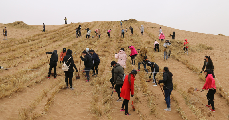 3月12日,在第39個(gè)“植樹節(jié)”到來之際,按照市上統(tǒng)一安排,學(xué)院領(lǐng)導(dǎo)帶隊(duì)400余名師生前往古浪縣陸港北部沙漠腹地開展義務(wù)壓沙勞動(dòng),勞動(dòng)現(xiàn)場(chǎng),學(xué)院領(lǐng)導(dǎo)和師生們不畏春寒,在技術(shù)人員的指導(dǎo)下,揮锨鏟沙、蒲草培沙、勞動(dòng)現(xiàn)場(chǎng)熱火朝天,整齊的稻草方格逐漸覆蓋了一個(gè)個(gè)沙丘。通過一天的勞動(dòng),圓滿完成了壓沙任務(wù),以實(shí)際行動(dòng)為保護(hù)環(huán)境、建設(shè)生態(tài)文明美麗武威做出了應(yīng)有貢獻(xiàn)。