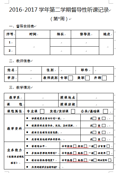 督導(dǎo)聽課記錄電子文檔