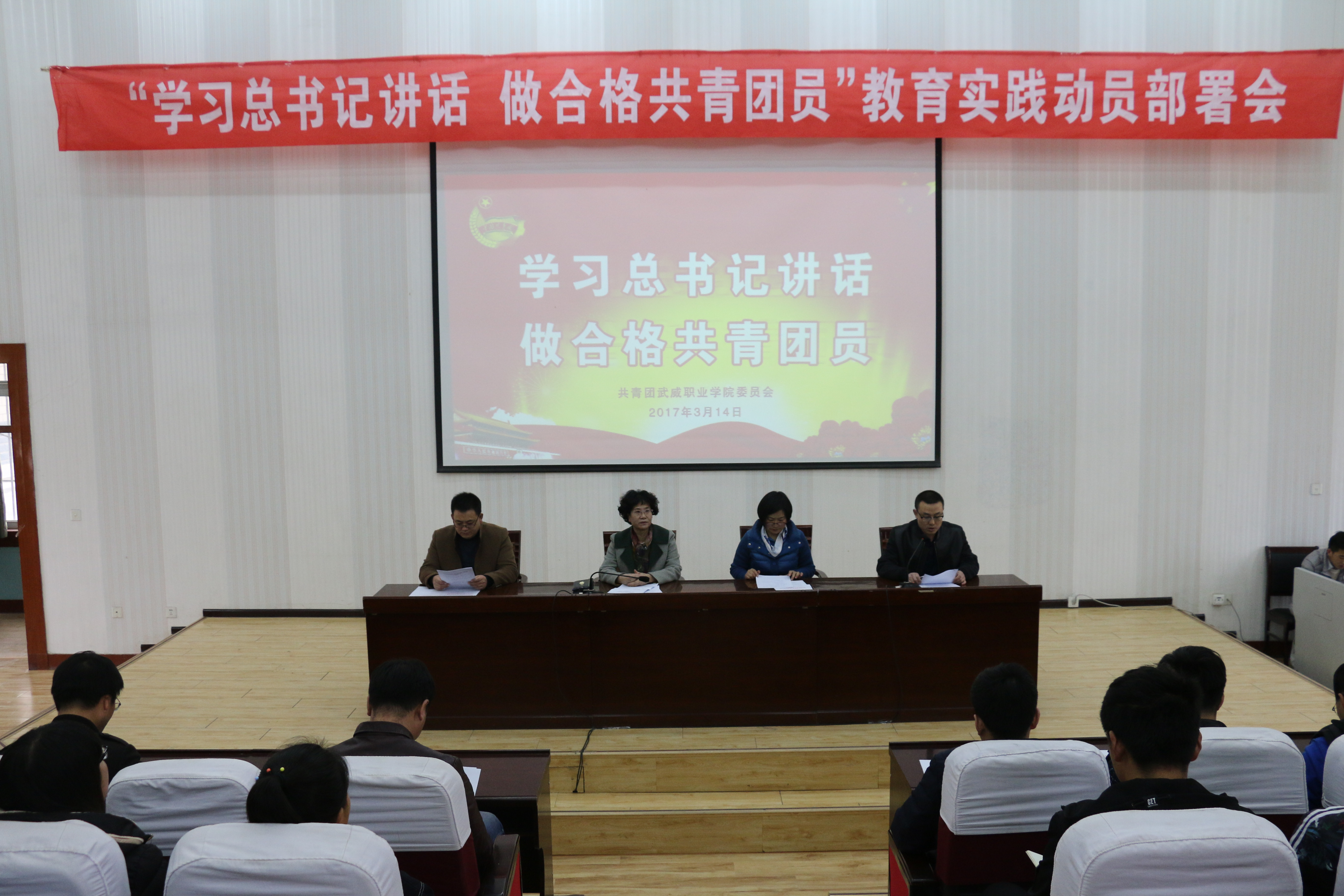 會議傳達了《共青團武威職業(yè)學院委員會2017年工作要點》、《關于學院共青團開展“學習總書記講話 做合格共青團員”教育實踐的通知》,并對“一學一做”教育實踐作了安排部署。