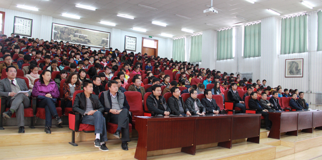啟動儀式后,學(xué)院心理學(xué)博士、副教授金玉龍為師生就 “就業(yè)與心理健康”做專題報(bào)告。(學(xué)生處 秦娜供稿)