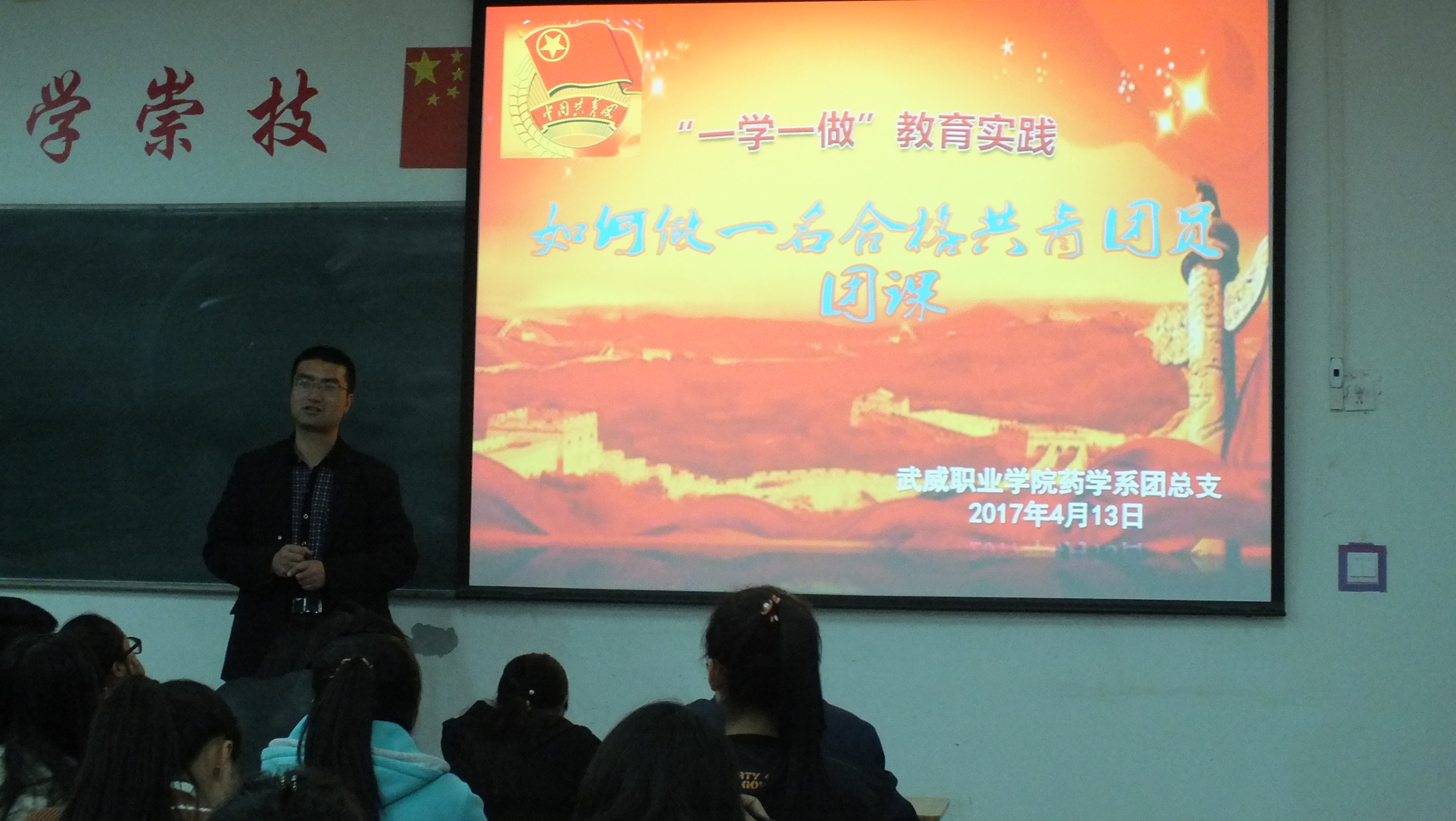 為進一步加強“學習總書記講話,做合格共青團員”實踐學習教育效果,藥學系團總支在系黨總支的領導下,按照學院團委“一學一做”教育實踐安排,于4月13日晚在明遠樓501教室組織開展了“如何做一名合格共青團員”主題團課,系團總支書記陳輝生組織全系團干部和團員代表參加了此次主題團課。
