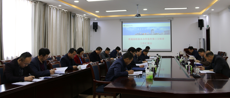 學院召開匯報會,李引珍就本次核查的具體要求作了說明。院長、黨委副書記宗瑞謙圍繞學院師生比、研究生學位專任教師比例、生均教學行政用房、生均圖書、生均教學儀器設(shè)備值、生均占地面積、生均宿舍面積7項基本辦學指標和我院2016年招生計劃執(zhí)行情況、專業(yè)設(shè)置、畢業(yè)生就業(yè)情況3項重點內(nèi)容作了匯報。