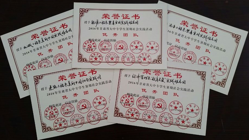 學(xué)院團(tuán)委被省委宣傳部、團(tuán)省委、省教育廳等九個(gè)部門評為2016年甘肅省大中專學(xué)生暑期社會(huì)實(shí)踐活動(dòng)“優(yōu)秀組織單位”,五個(gè)實(shí)踐團(tuán)隊(duì)被評為省級“優(yōu)秀團(tuán)隊(duì)”,五名同志被評為“先進(jìn)個(gè)人”,五名教師被評為 “優(yōu)秀指導(dǎo)教師”。