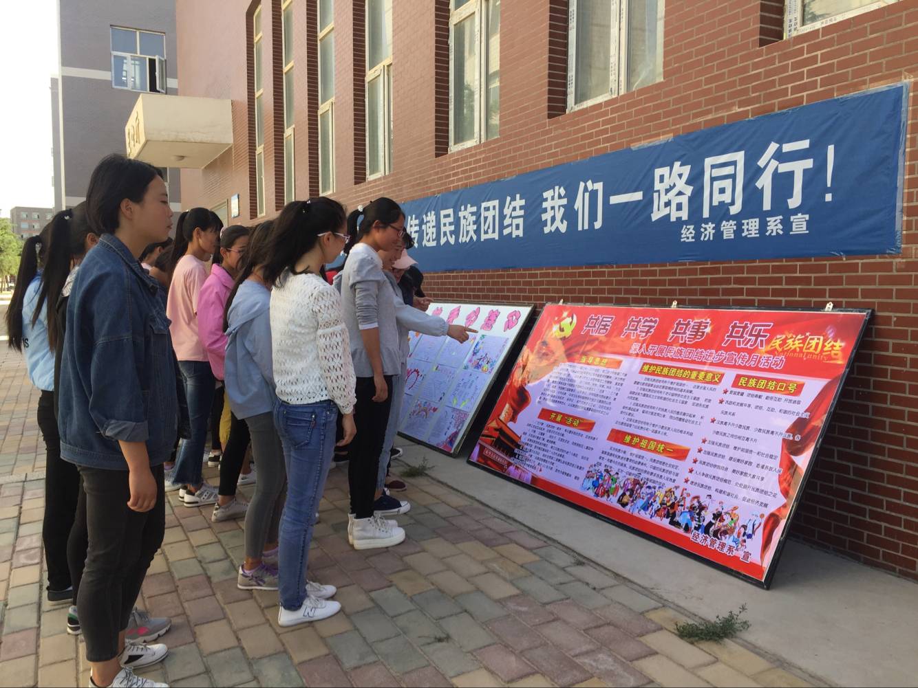 5月17日-20日,經(jīng)濟(jì)管理系開展了“民族團(tuán)結(jié)進(jìn)步宣傳月”系列活動(dòng)。通過擺放展板、懸掛條幅、建立文化墻、辦黑板報(bào)及召開主題團(tuán)會(huì)等活動(dòng)。增強(qiáng)了廣大師生對(duì)民族文化的了解和認(rèn)同,強(qiáng)化了民族團(tuán)結(jié)意識(shí),有力推動(dòng)了我系思想政治教育工作。