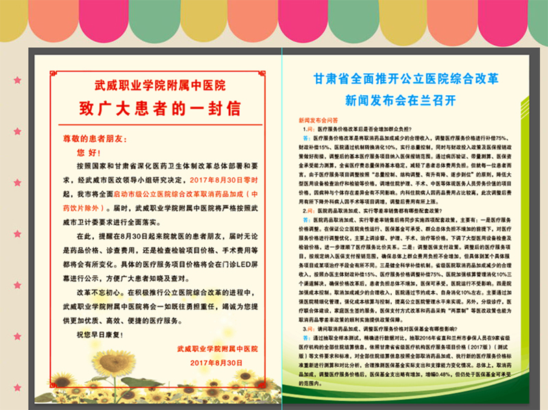 根據(jù)省醫(yī)改辦《關(guān)于全面推開(kāi)全省公立醫(yī)院綜合改革的通知》,8月30日零時(shí)起,直屬附屬醫(yī)院?jiǎn)?dòng)公立醫(yī)院綜合改革,取消藥品加成(中藥飲片除外),實(shí)施新的醫(yī)療服務(wù)價(jià)格。