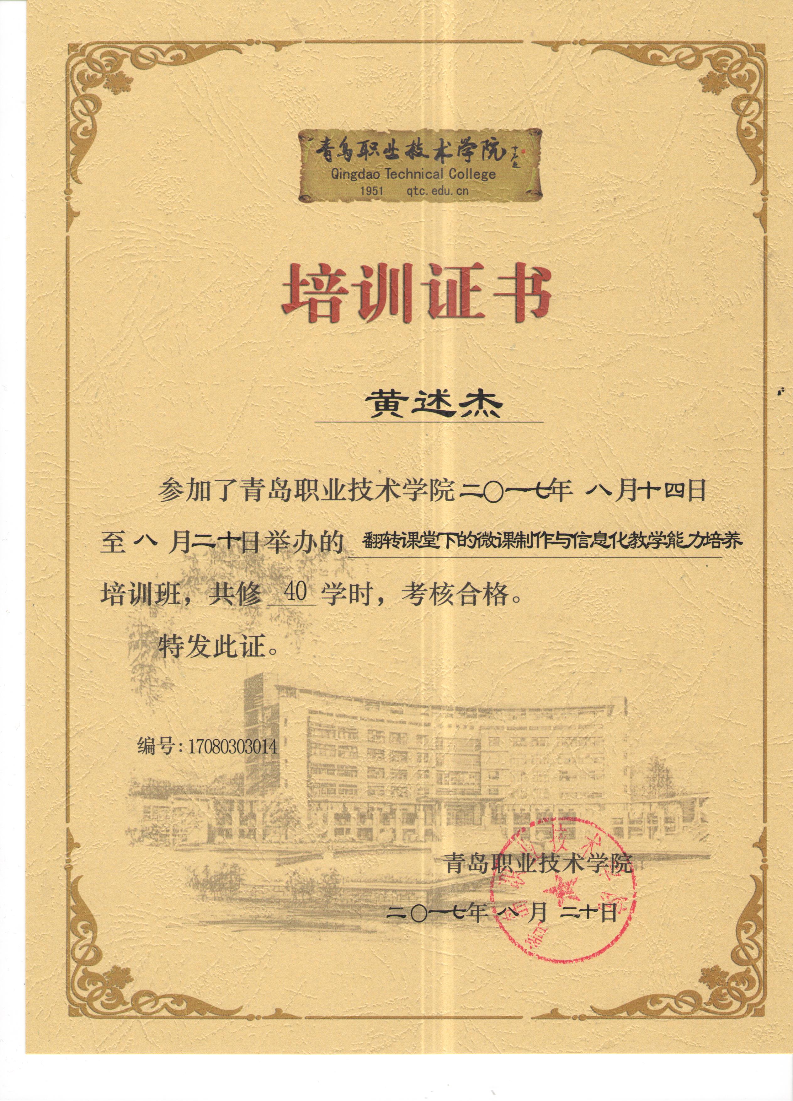 2017年8月15日至8月20日,我參加了由青島職業(yè)技術(shù)學(xué)院舉辦的暑期《翻轉(zhuǎn)課堂下的微課制作與信息化教學(xué)能力培養(yǎng)》培訓(xùn)班。本次培訓(xùn)青島職業(yè)技術(shù)學(xué)院魏偉教授主講。魏偉教授是2015年全國職業(yè)院校信息化教學(xué)大賽教學(xué)設(shè)計(jì)一等獎(jiǎng)獲得者,2016山東省職業(yè)院校信息化教學(xué)大賽評委。