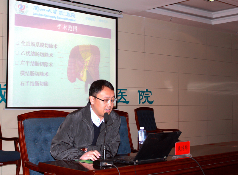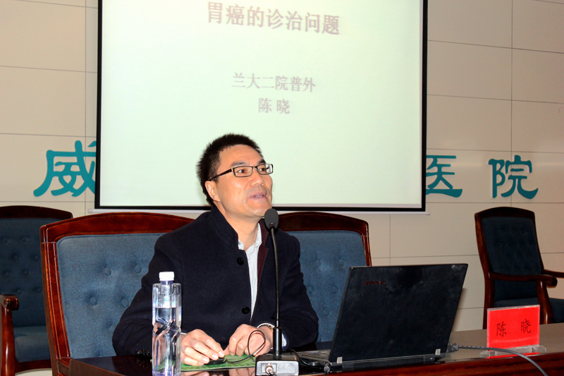 醫(yī)院邀請到蘭州大學(xué)第二醫(yī)院普外三科主任、胃腸外科主任、主任醫(yī)師陳曉和普外二科副主任,副主任醫(yī)師康博雄為大家作學(xué)術(shù)講座。陳曉主講了《胃癌的診治問題》,并與大家分享了他在法國醫(yī)院和美國醫(yī)院進修學(xué)習(xí)時的一些感想和見聞。陳曉在講座中結(jié)合臨床體會說:許多胃癌患者在就診時已經(jīng)發(fā)展為中晚期,失去了手術(shù)機會。他呼吁全社會要認識到對胃癌高發(fā)地區(qū)、高危年齡、高危人群進行篩查的必要性。醫(yī)生要對有癥狀的患者及早進行胃鏡檢查,爭取做到早發(fā)現(xiàn)、早診斷、早治療。講座中,陳曉就外科手術(shù)吻合方式選擇與直屬附屬醫(yī)院外科主任滕志勇醫(yī)生進行了現(xiàn)場互動。