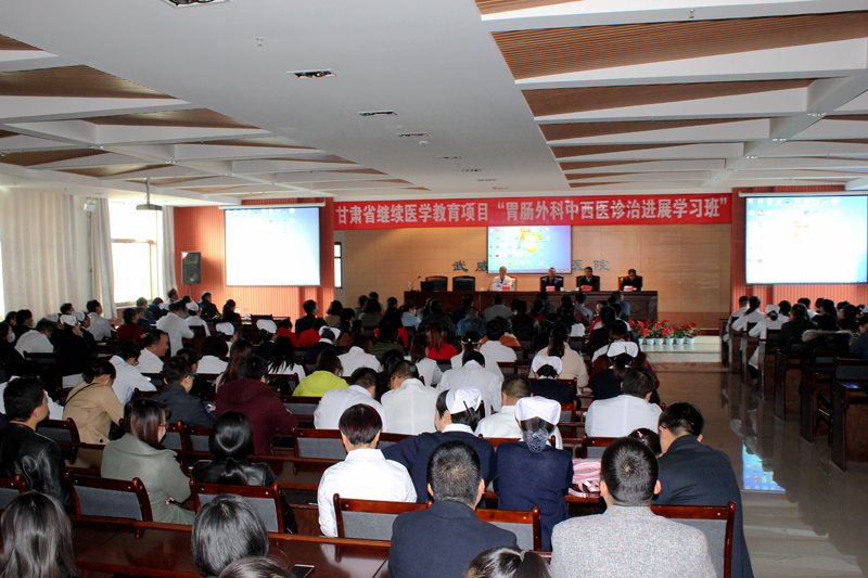 2017年10月28日早上8.30分,直屬附屬醫(yī)院在內(nèi)科七樓會議室舉辦的省級繼續(xù)教育項目:胃腸外科中西醫(yī)診治進展學(xué)習(xí)班,蘭州大學(xué)第二醫(yī)院兩位胃腸病外科專家作學(xué)術(shù)講座。