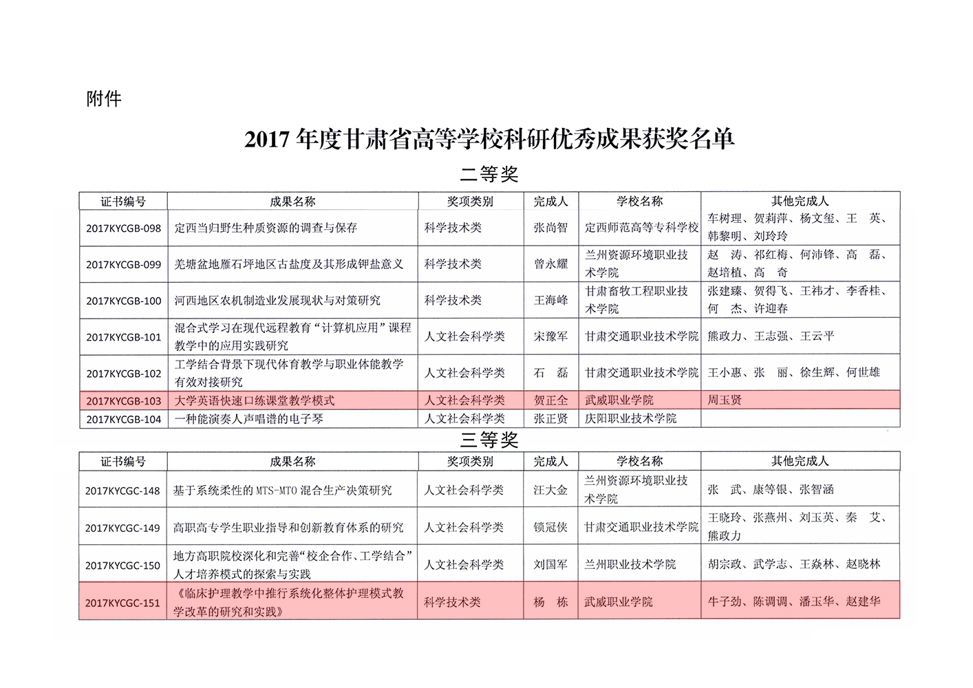 轉(zhuǎn)發(fā)甘肅省教育廳關(guān)于公布2017年度甘肅省高等學(xué)校科研優(yōu)秀成果獎(jiǎng)獲獎(jiǎng)名單的通知