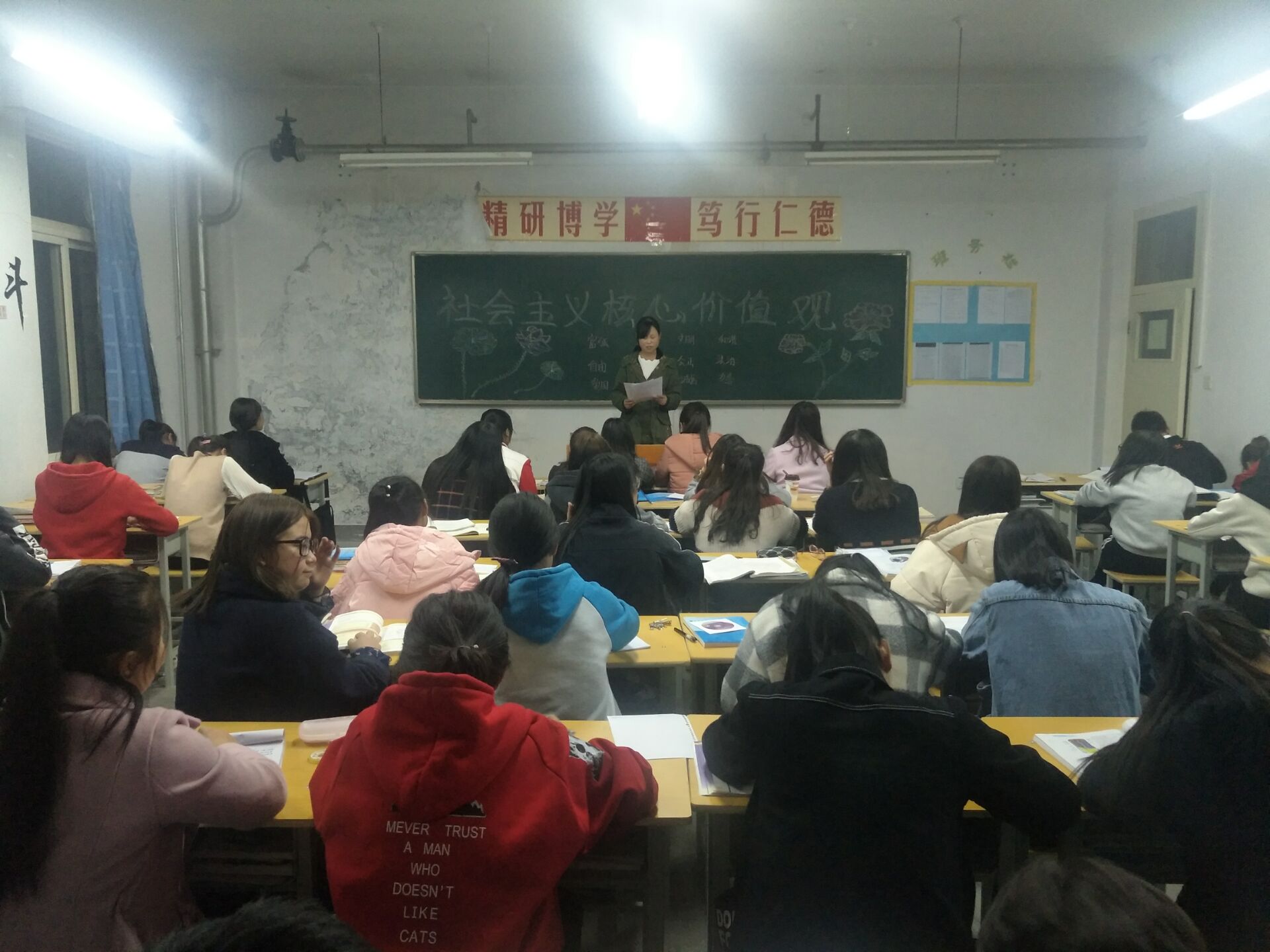 ?根據(jù)藥學(xué)系對社會主義核心價值觀主題宣傳教育創(chuàng)建工作的安排,11月6日,利用晚自習(xí),17級藥學(xué)5班召開主題班會,深入學(xué)習(xí)宣傳社會主義核心價值觀的概念內(nèi)涵、發(fā)展歷程、價值意義、基本原則、踐行路徑、實踐活動和“24字人知人曉”等內(nèi)容。同時,將“24字內(nèi)容”在教室、宿舍張貼宣傳,做到社會主義核心價值觀進(jìn)教室、進(jìn)宿舍、進(jìn)頭腦。通過學(xué)習(xí),對“24字人知人曉”工程做到了班級全覆蓋,班級學(xué)生對社會主義核心價值觀內(nèi)涵的認(rèn)識和理解進(jìn)一步加深。今后,將根據(jù)系上安排,不斷將培育和踐行社會主義核心價值觀工作引向深入。