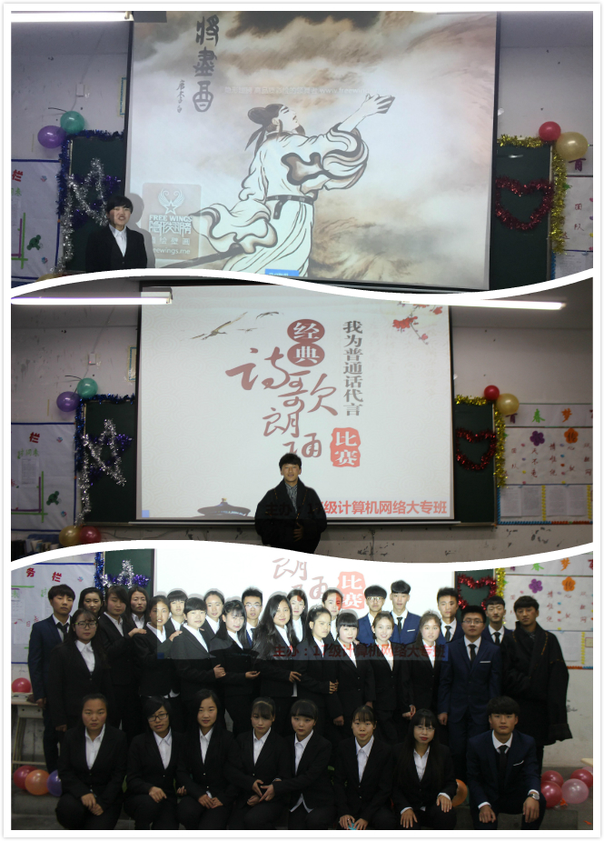 為了弘揚(yáng)中華民族傳統(tǒng)文化,倡導(dǎo)學(xué)生立德修身,培育愛(ài)國(guó)情操,2017年11月20日,17級(jí)計(jì)算機(jī)網(wǎng)絡(luò)大專班舉辦了主題為“傳承中華文化,共筑青春夢(mèng)想”經(jīng)典詩(shī)歌誦讀比賽。